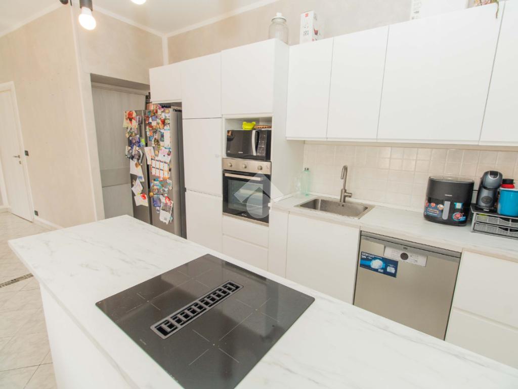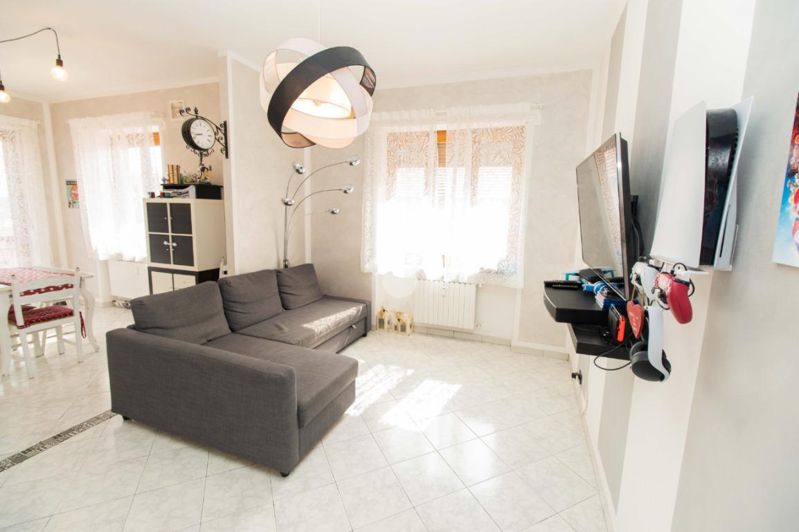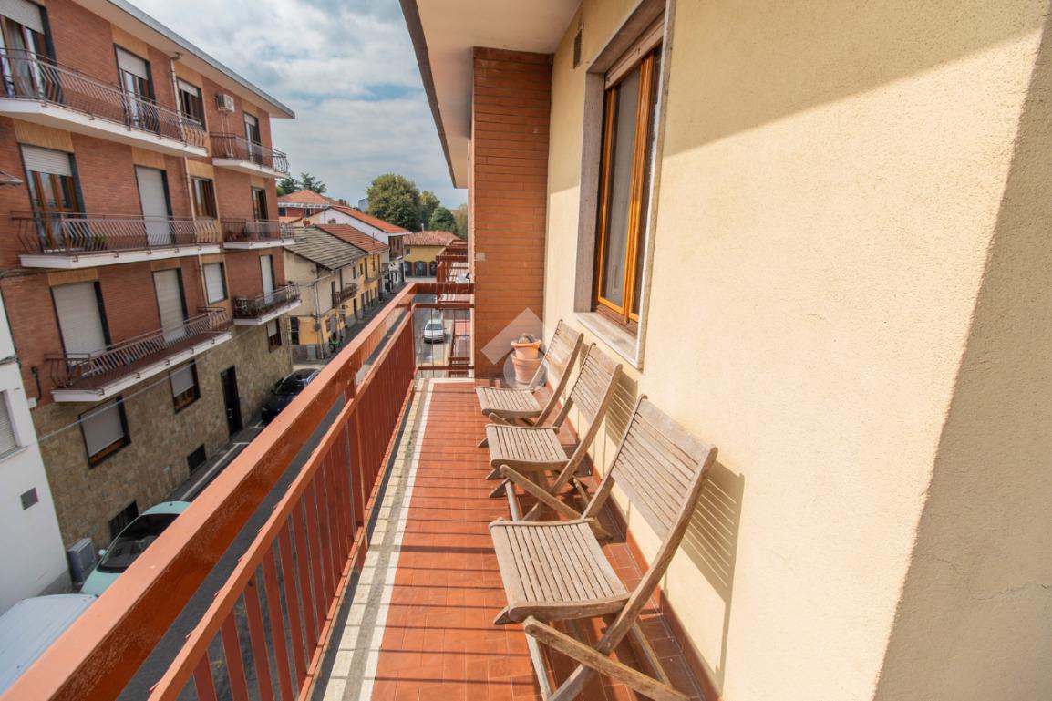 In pieno centro a Leinì, comodo a tutti i servizi e negozi, proponiamo in vendita un ampio appartamento di circa 120 mq, situato al secondo ed ultimo piano, senza ascensore, di una palazzina tranquilla e ben tenuta. L'immobile si compone di un ingresso su un ampio disimpegno, che anticipa la zona giorno, con soggiorno e cucina a vista, due camere da letto matrimoniali, due bagni rispettivamente con vasca e doccia e comodo ripostiglio. L'alloggio è arricchito da tre balconi con accesso dalla cucina e dalle camere ed è dotato di impianto di climatizzazione nel soggiorno e nelle camere. E' inoltre completo di cantina al piano interrato e di un box auto singolo. Il riscaldamento è centralizzato con termovalvole. L'alloggio è stato ristrutturato nel 2022. Soluzione ideale per chi cerca ampie metrature, comfort abitativo e una posizione strategica in centro paese.