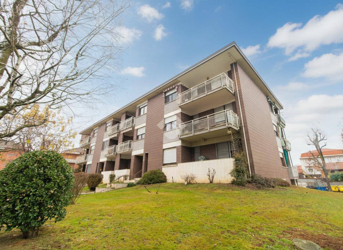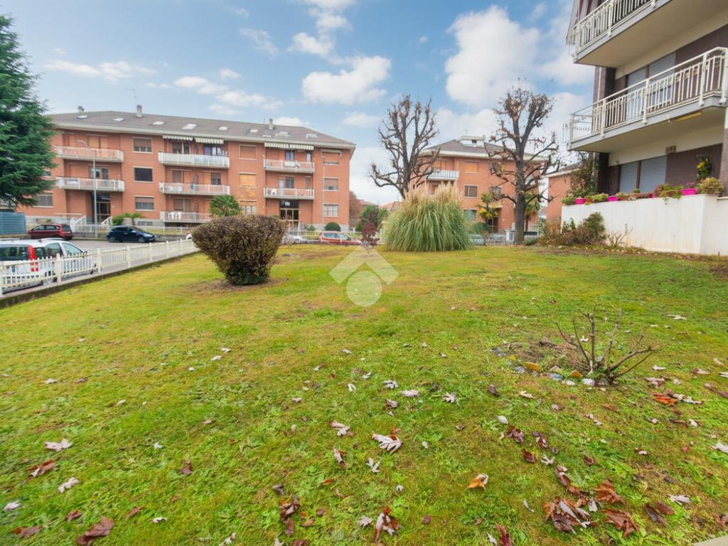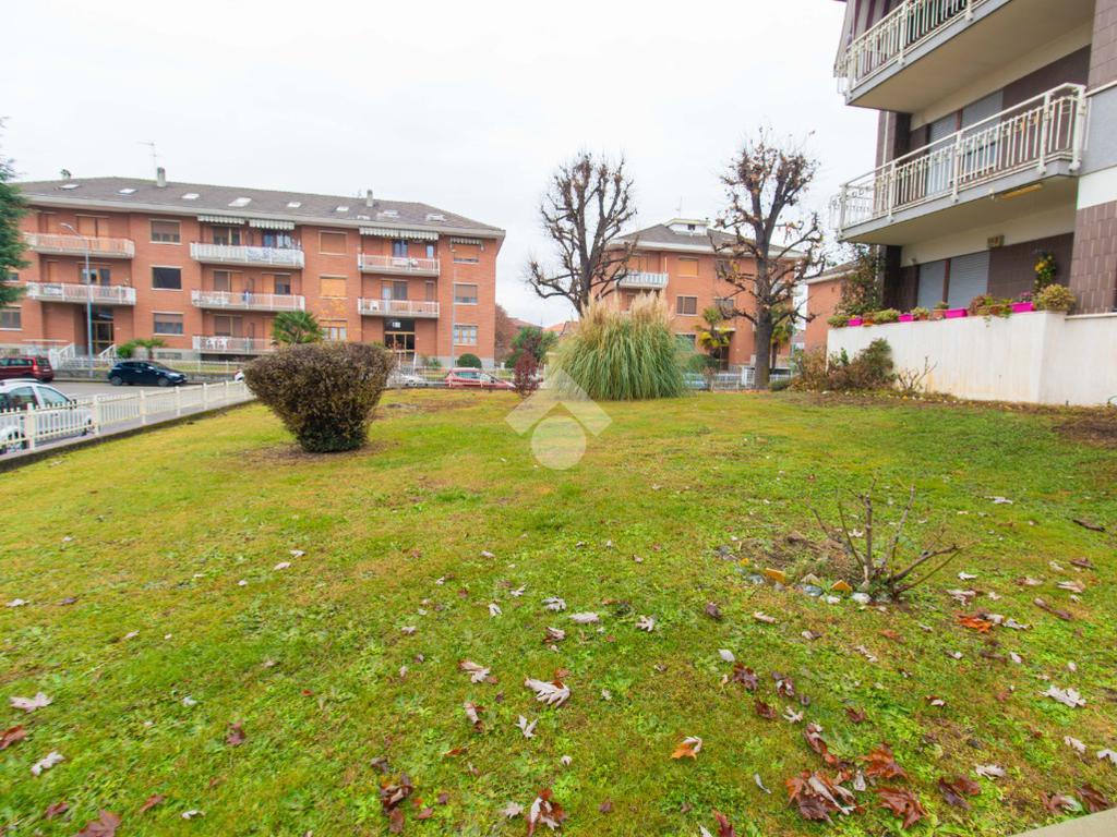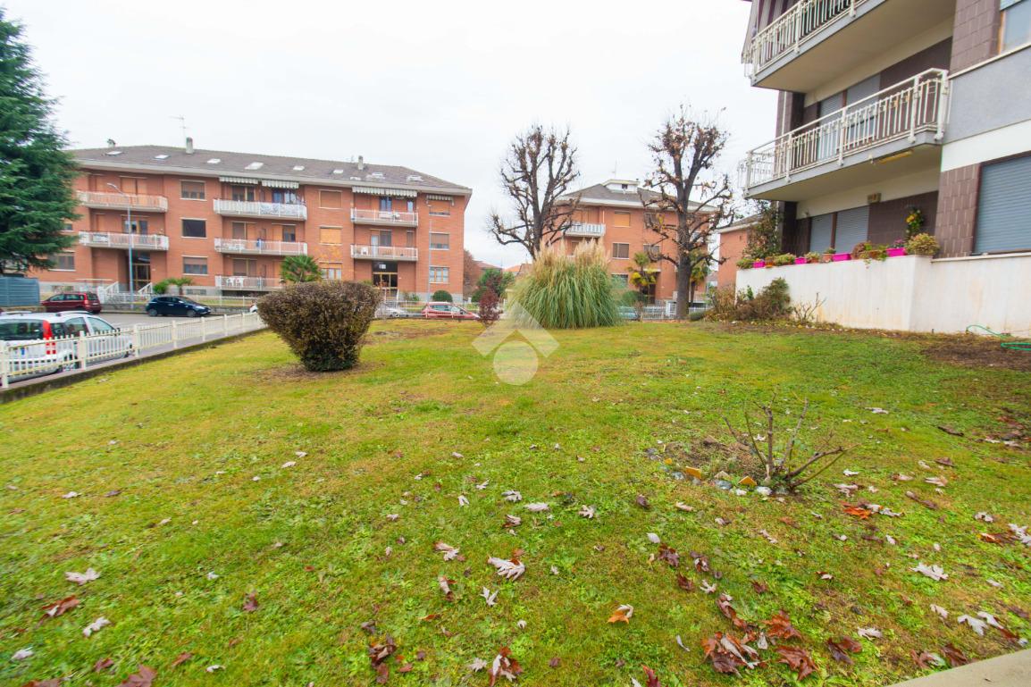 La palazzina si trova in zona centrale di Leini dove a piedi si possono aggiungere tutti i servizi che offre la cittadina, come mercato, il centro storico ed i mezzi pubblici. La zona é molto tranquilla e l'interno dove é situato l'ingresso dell'appartamento fa apprezzare l'ottima esposizione solare. Il vialetto del giardino condominiale permette di accedere all'androne dove i pochi scalini permettono di accedere all'abitazione con poche barriere architettoniche. L'ingresso spazioso dell'appartamento disimpegna gli ambienti, il tinello permette di essere arredato a zona giorno e la porta finestra conduce al balcone sull'interno cortile. Il cucinino di pianta quadrata permette di arredarlo su ogni lato. Il bagno di buona metratura ha la vasca e permette di ospitare un ampio mobile con lavandino. La camera da letto funzionale per una matrimoniale ha l'accesso sul secondo balcone. Completa la metratura la cantina ed un box auto singolo acquistabile con un prezzo aggiuntivo di € 12.000,00. Lo stato interno è originale ma ben tenuto negli anni, il riscaldamento é centralizzato e le spese di condominio sono contenute. Libero subito.