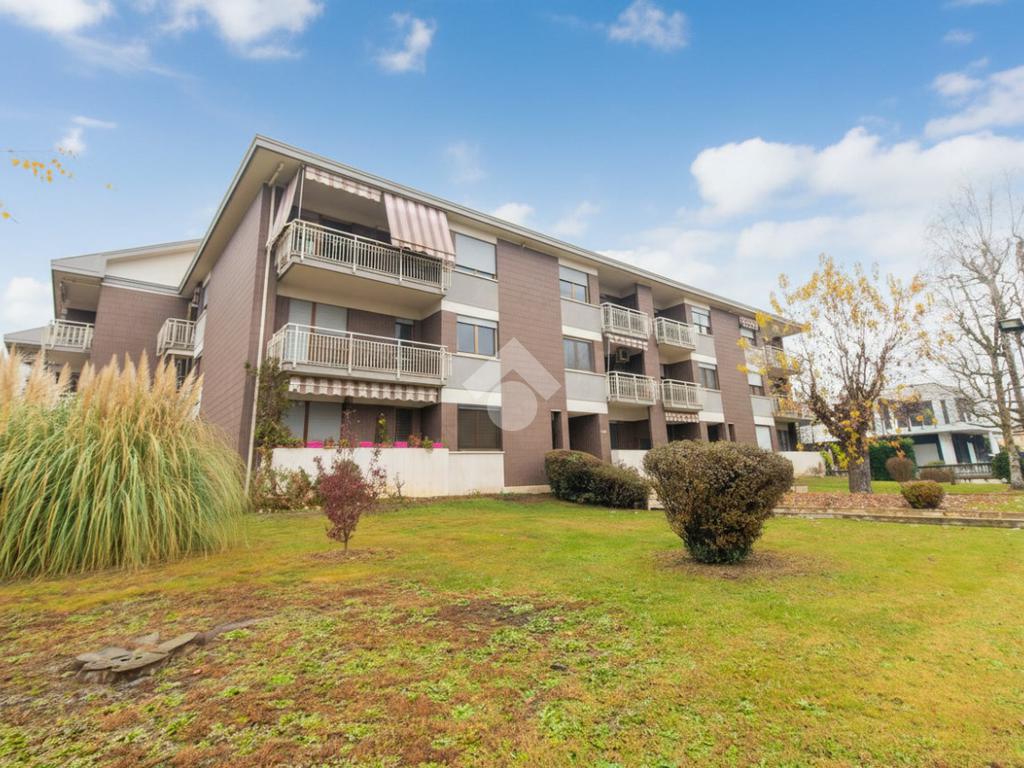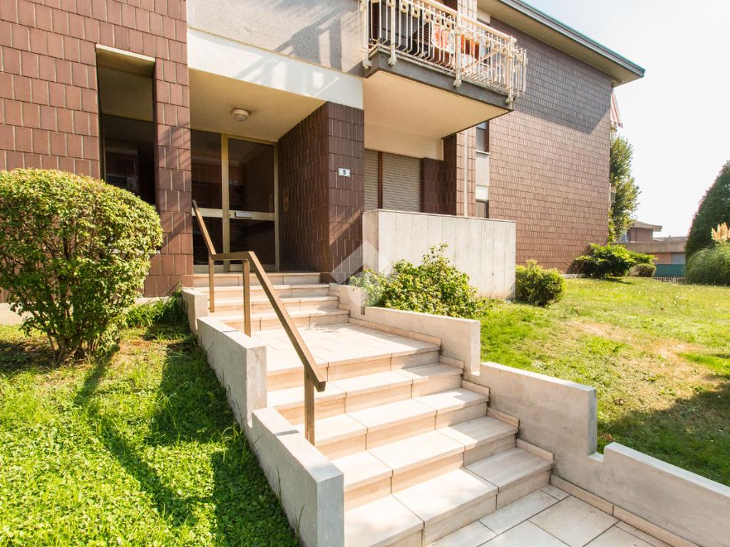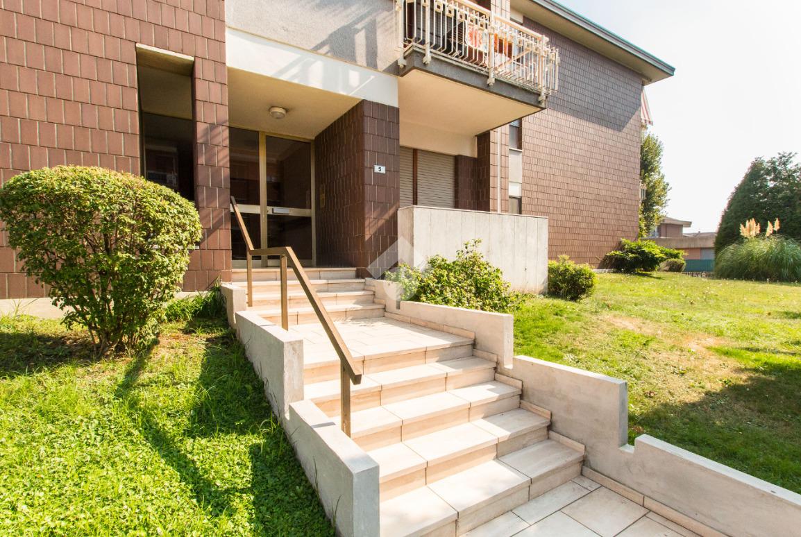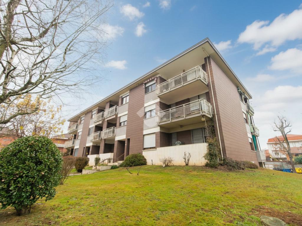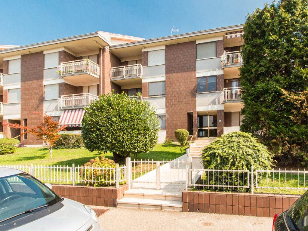 La palazzina si trova in zona centrale di Leini dove a piedi si possono aggiungere tutti i servizi che offre la cittadina, come mercato, il centro storico ed i mezzi pubblici. La zona é molto tranquilla e l'interno dove é situato l'ingresso dell'appartamento fa apprezzare l'ottima esposizione solare. Il vialetto del giardino condominiale permette di accedere all'androne dove i pochi scalini permettono di accedere all'abitazione con poche barriere architettoniche. L'ingresso spazioso dell'appartamento disimpegna gli ambienti, il tinello permette di essere arredato a zona giorno e la porta finestra conduce al balcone sull'interno cortile. Il cucinino di pianta quadrata permette di arredarlo su ogni lato. Il bagno di buona metratura ha la vasca e permette di ospitare un ampio mobile con lavandino. La camera da letto funzionale per una matrimoniale ha l'accesso sul secondo balcone. Completa la metratura la cantina ed un box auto singolo acquistabile con un prezzo aggiuntivo di € 12.000,00. Lo stato interno è originale ma ben tenuto negli anni, il riscaldamento é centralizzato e le spese di condominio sono contenute. Libero subito.