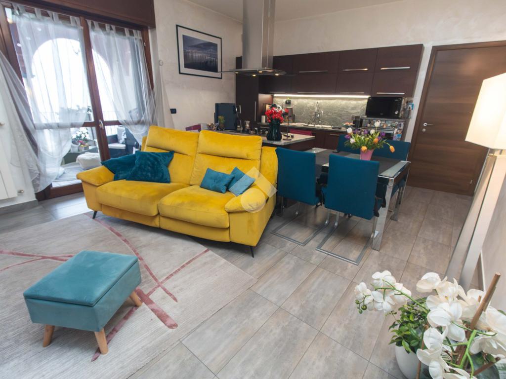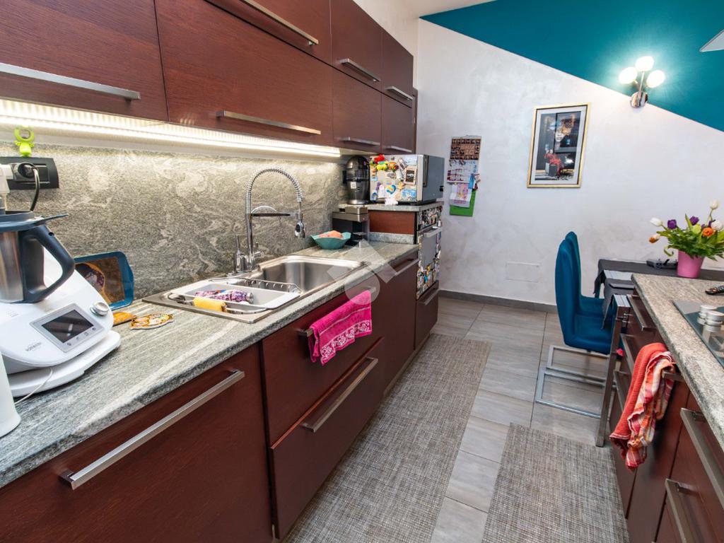 Varcando il portoncino blindato, si viene accolti da una luminosa zona giorno, dove soggiorno e cucina con penisola si fondono in un ambiente caldo e conviviale, perfetto per condividere momenti in famiglia o con gli amici. Da qui si accede direttamente al terrazzo coperto, uno spazio ideale per rilassarsi all’aria aperta in ogni stagione.