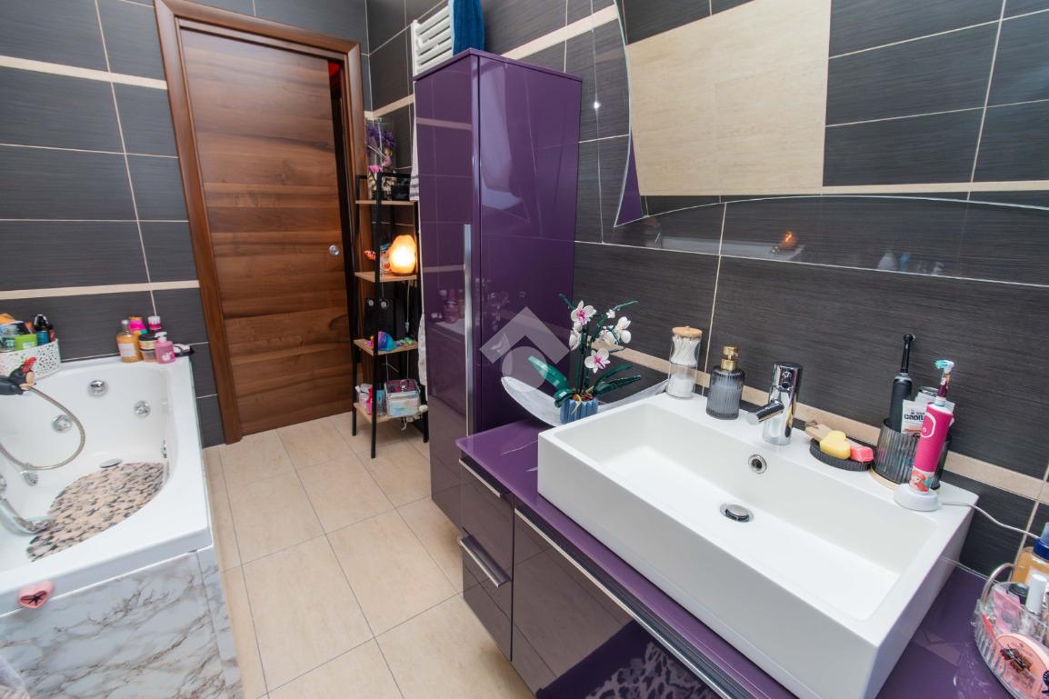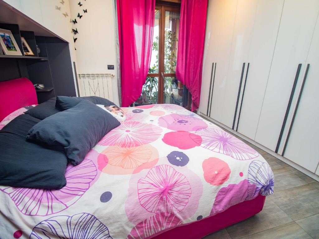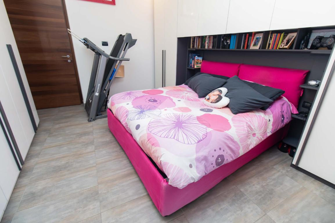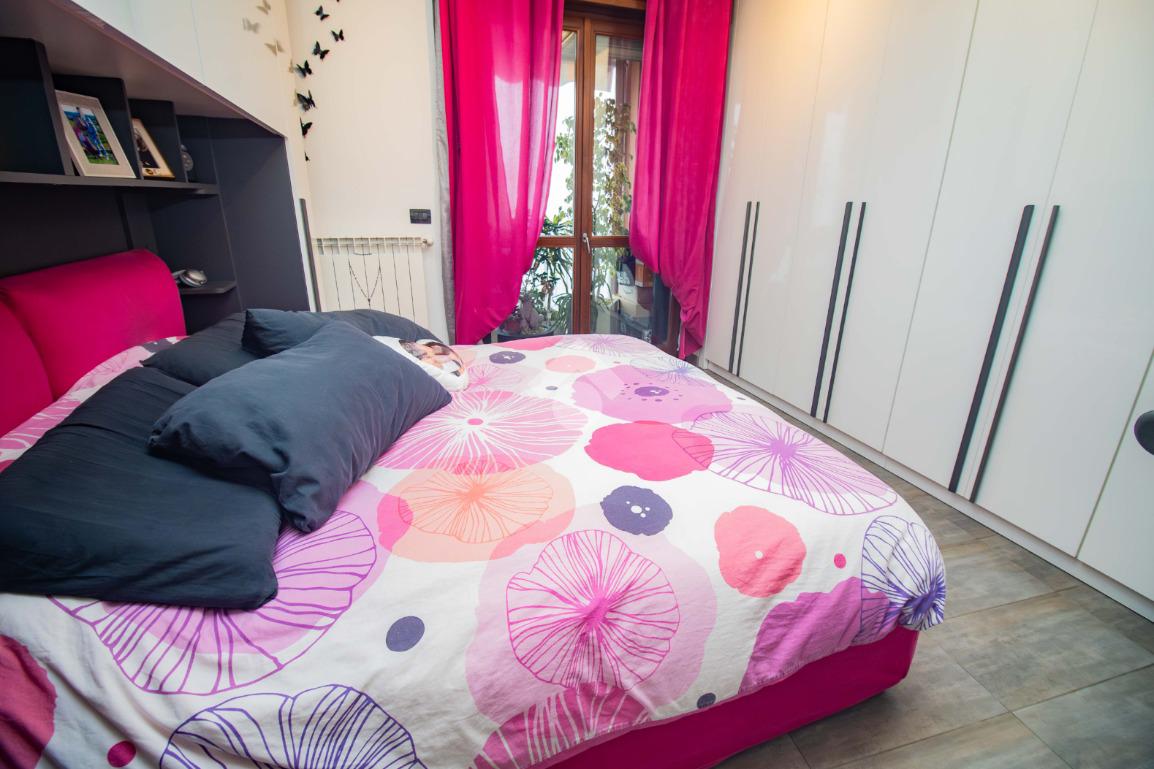 La zona notte, ben disimpegnata, ospita due camere da letto: una matrimoniale accogliente e una cameretta versatile, entrambe con affaccio su un balcone riservato. I due bagni garantiscono praticità e comfort, mentre il ripostiglio aggiunge uno spazio prezioso per l’organizzazione della casa.