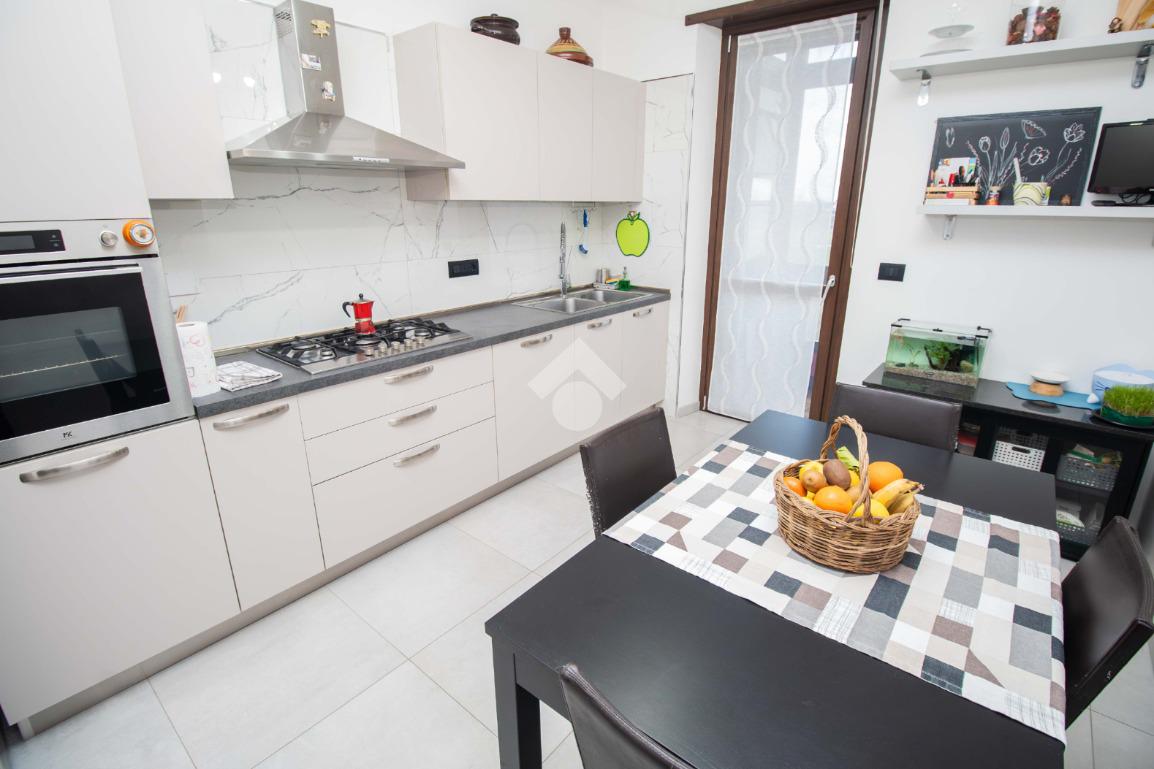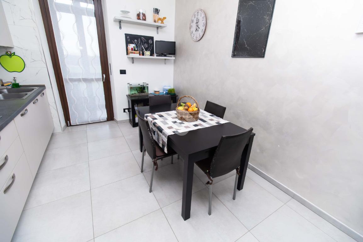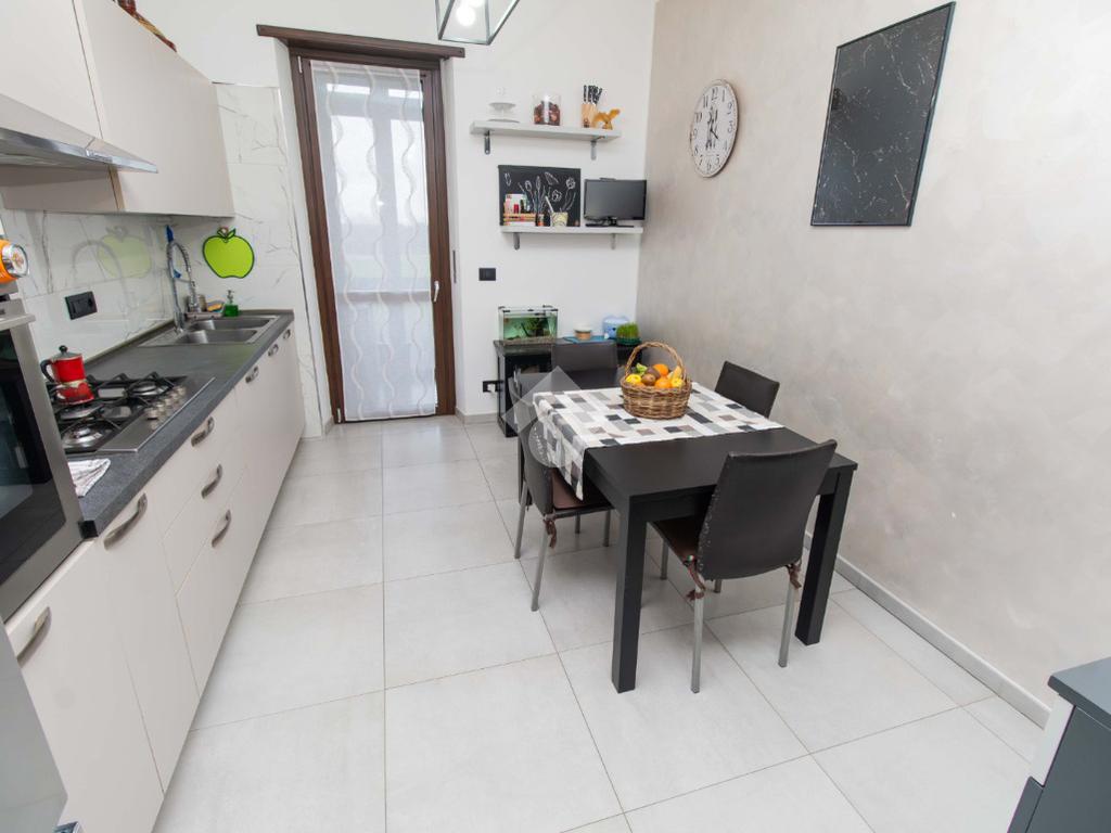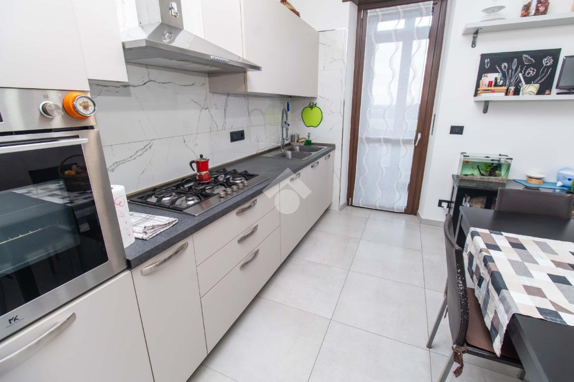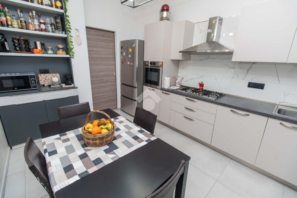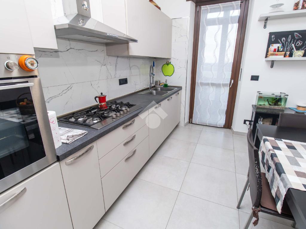 L’ingresso, tramite portoncino blindato, conduce alla zona giorno composta da un soggiorno ampio e vivibile e da una cucina abitabile con affaccio sul balcone interno verandato.