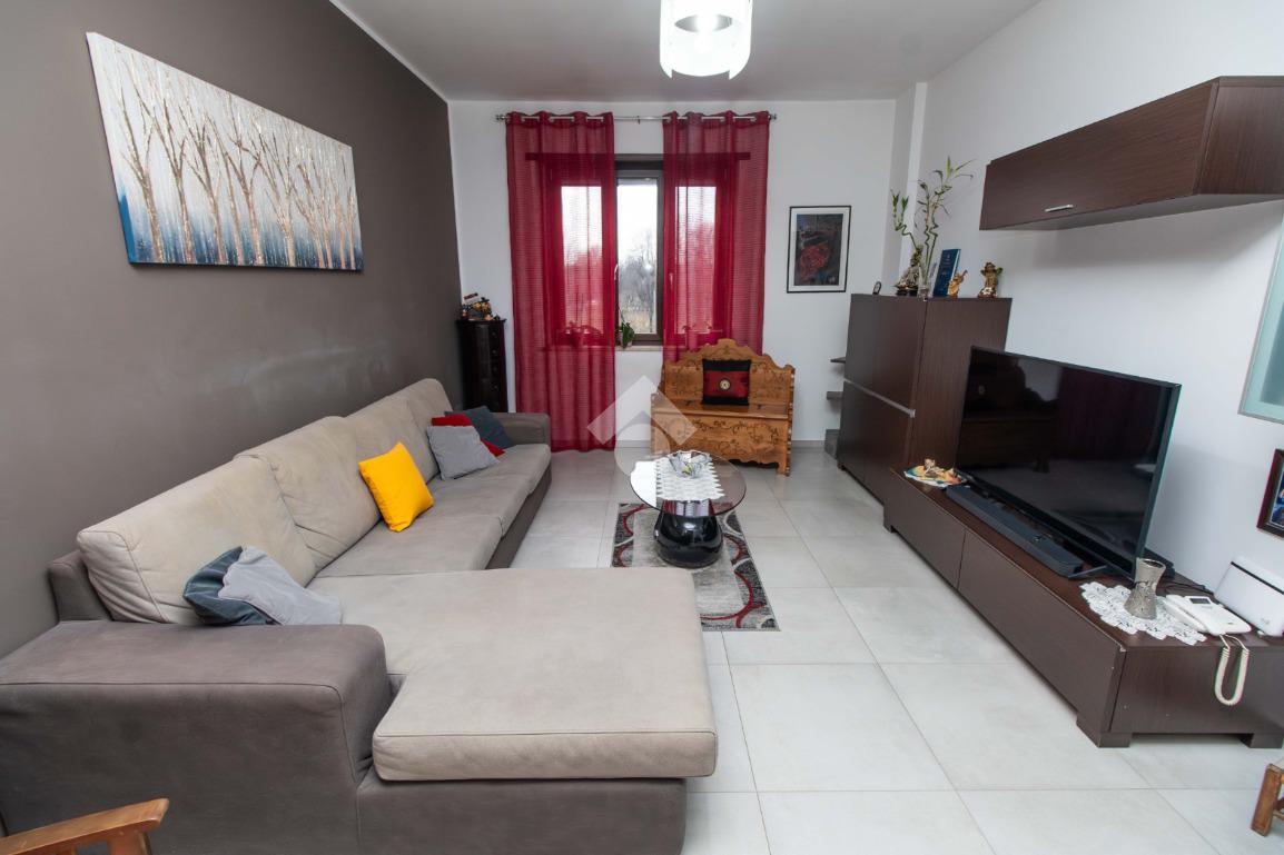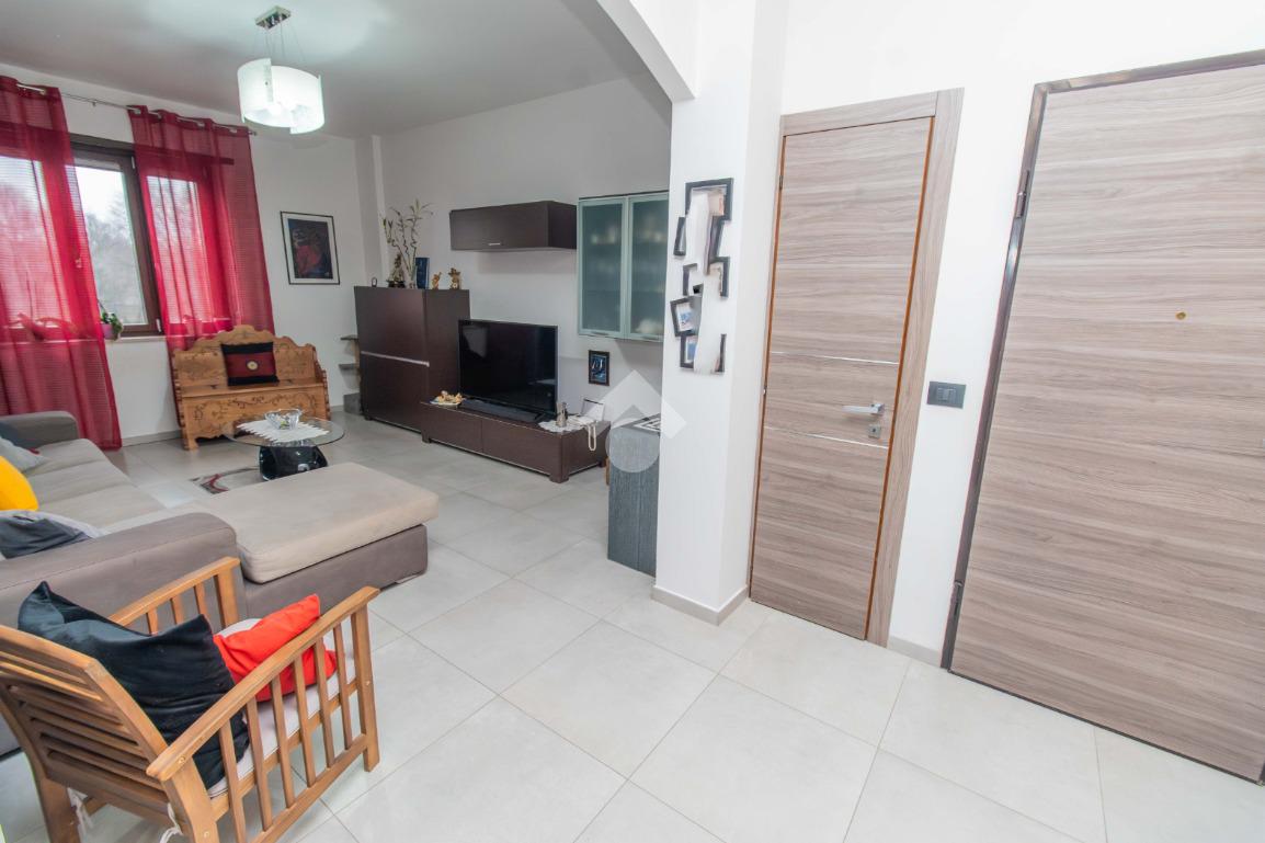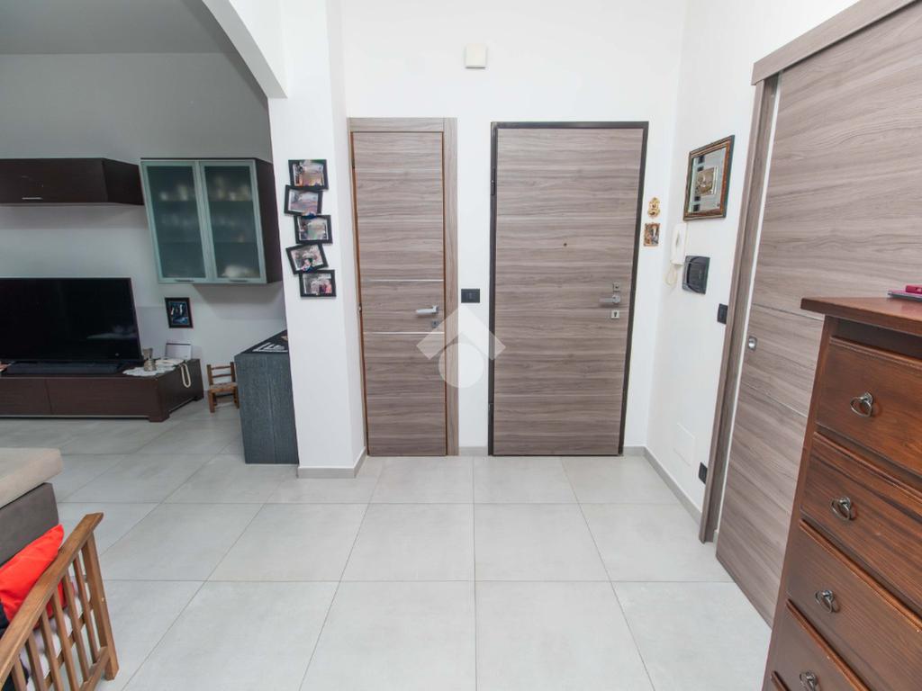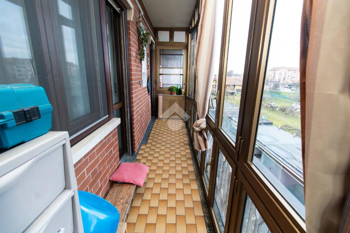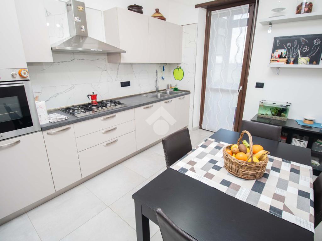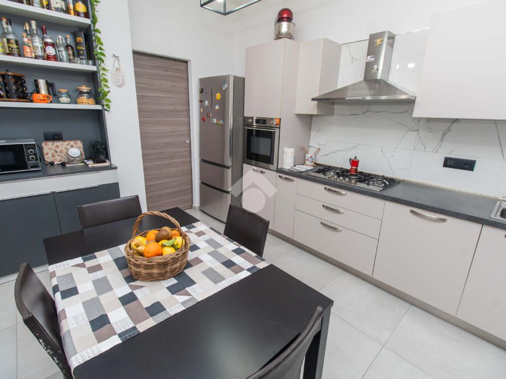 L’ingresso, tramite portoncino blindato, conduce alla zona giorno composta da un soggiorno ampio e vivibile e da una cucina abitabile con affaccio sul balcone interno verandato.