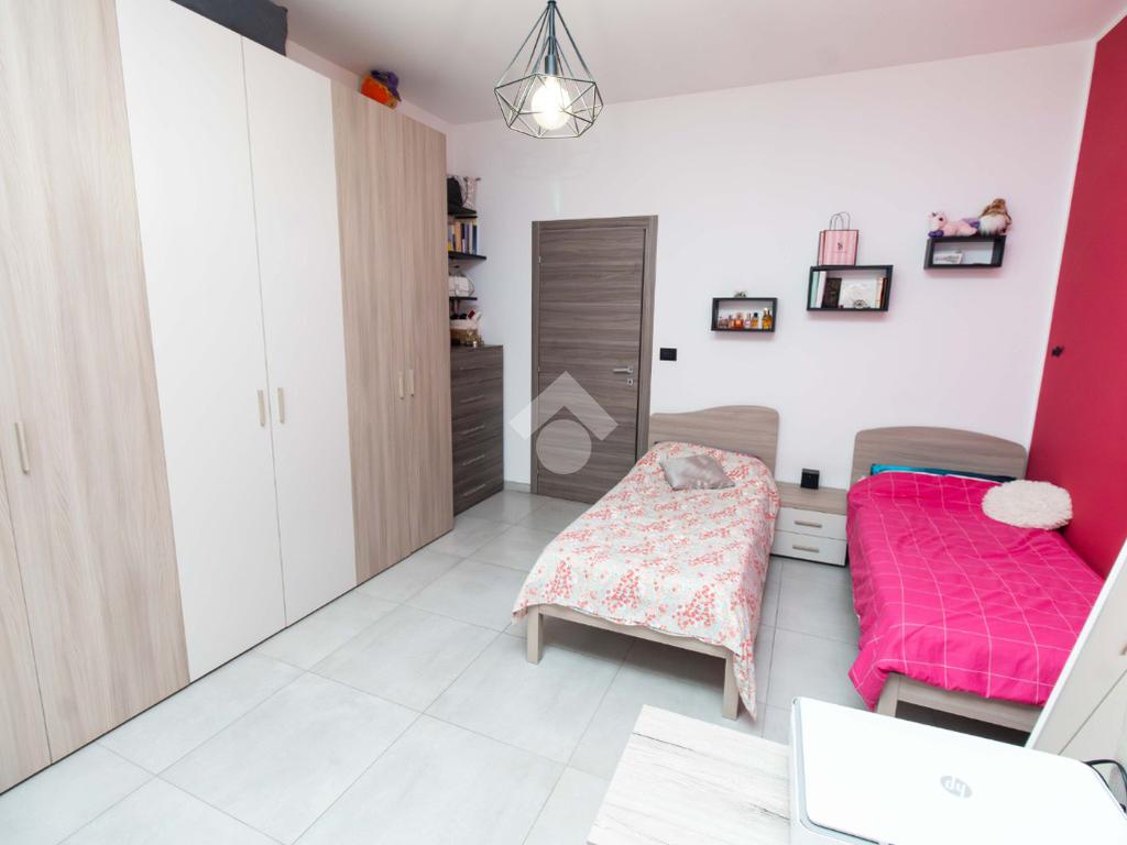 La zona notte ospita due camere da letto, entrambe di generosa metratura e arredabili come matrimoniali, con accesso al balcone. Il bagno finestrato è completo di doccia con seduta. Un comodo ripostiglio completa la superficie dell’abitazione.