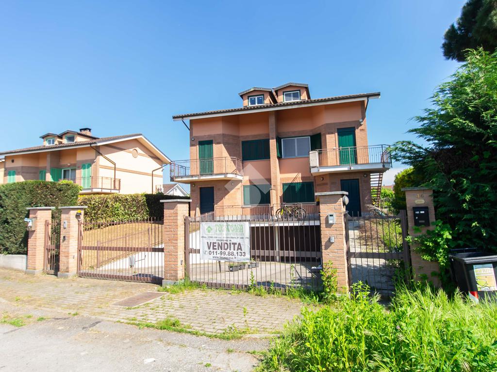 In zona molto tranquilla, proponiamo in vendita villa a schiera angolare edificata nel 2015 e ristrutturata completamente circa 2 anni fa. La proprietà si sviluppa su più livelli, offrendo ampi spazi per ogni esigenza. Al piano terra troviamo il primo alloggio composto da ingresso su disimpegno, camera matrimoniale, bagno con doccia, ripostiglio e cucina abitabile con uscita, tramite porta finestra, sul retro dell'abitazione. Tramite scala esterna, si accede al piano superiore, dove troviamo il secondo alloggio bilivello composto da ingresso su salotto, disimpegno, lavanderia, ripostiglio, bagno con doccia e cucina abitabile con balcone. Al piano mansardato due camere matrimoniali e ripostiglio con predisposizione per ulteriore bagno. A completare la proprietà box auto doppio, cantina piastrellata e due posti auto. Giardino privato recintato di 220 mq. Possibilità di unire i due alloggi attraverso scala interna. L'immobile si trova vicino alla fermata del pullman, a pochi minuti di macchina dall'ingresso dell'autostrada A4 Torino- Milano e A5 Torino- Aosta, a pochi minuti dal centro del paese e Settimo Torinese. Libera da subito!