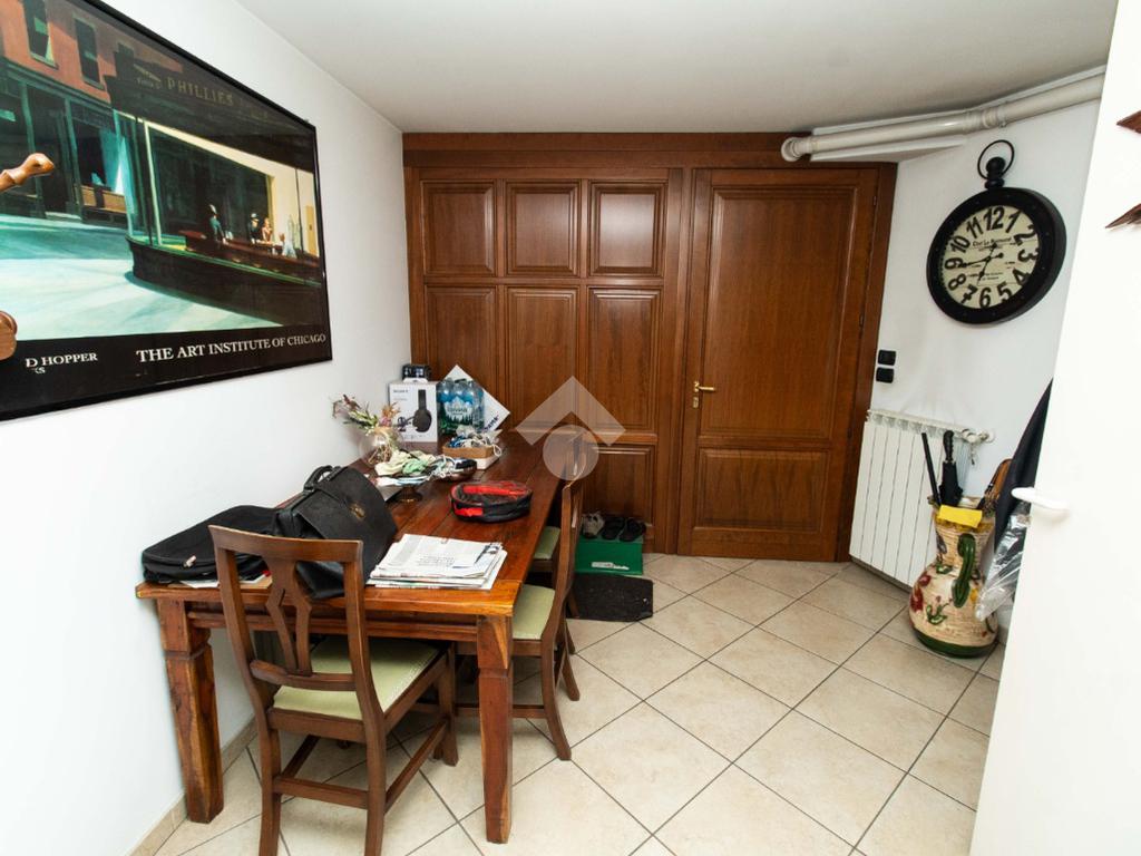 Al piano terra, ingresso su disimpegno con accesso diretto all'ascensore interno che collega tutti i piani fino alla mansarda. La zona giorno comprende una cucina abitabile con affaccio diretto sul giardino, una sala da pranzo con armadio a muro, una comoda lavanderia e un locale stireria.